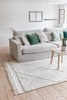 Kebnekaise i vitt är en enfärgad handvävd tät ullmatta. Den har ett karvat mönster och kortsidorna har en kant med tjockare och längre fransar. Kebnekaise är en stilren matta och mönstret ger en fin effekt.
